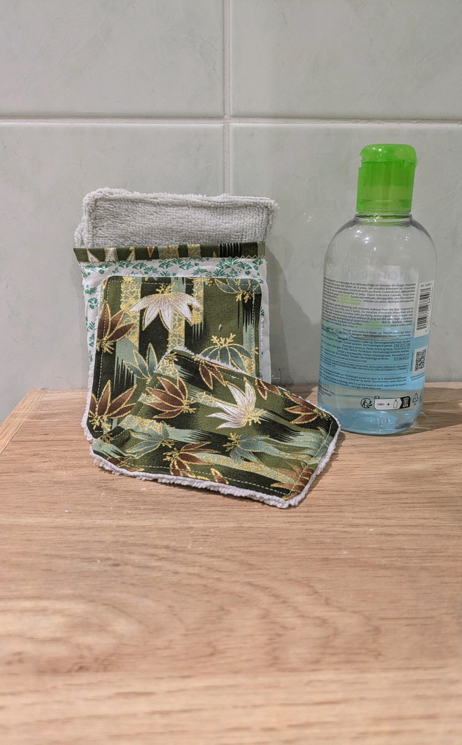 Lingettes démaquillantes vert bambouseraie en lot de 6 + pochon assorti.