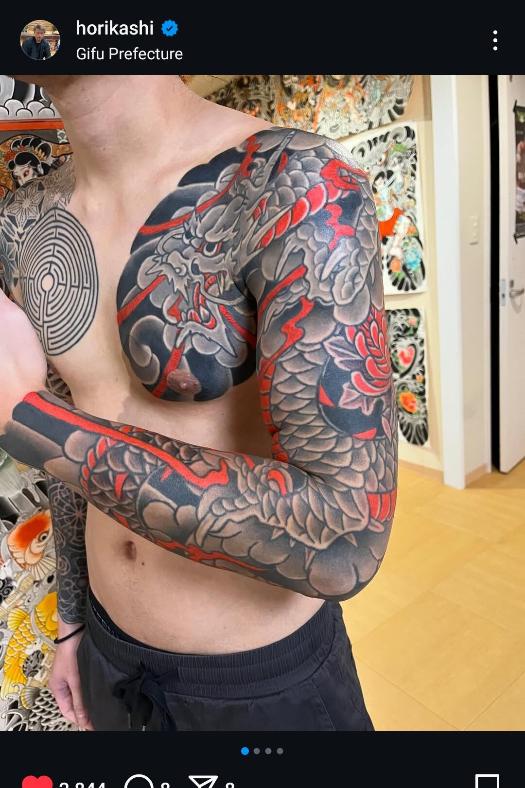 Des hoodies, puis par la suite, des kimono irezumi. J’ai eu la chance de rencontrer un maître irezumi, d’observer sont travail pendant une journée entière ainsi que de manger à sa table! Le irezumi est la méthode traditionnelle du tatouage japonais. Quand on pense irezumi, on pense instinctivement aux yakuzas, de très loin. Mais ils sont également portés par des membres d’associations de quartiers, les membres qui exercent des métiers physiques et dangereux (pompiers, ouvriers du bâtiment…) Bien que l’étiquette « yakuza » soit au premier plan, l’art du tatouage sort de l’ombre au Japon, grâce aux… étrangers (nous). Le maître irezumi de ce revirement inattendu qui fait se répandre cet art ancestral à travers le monde entier.
